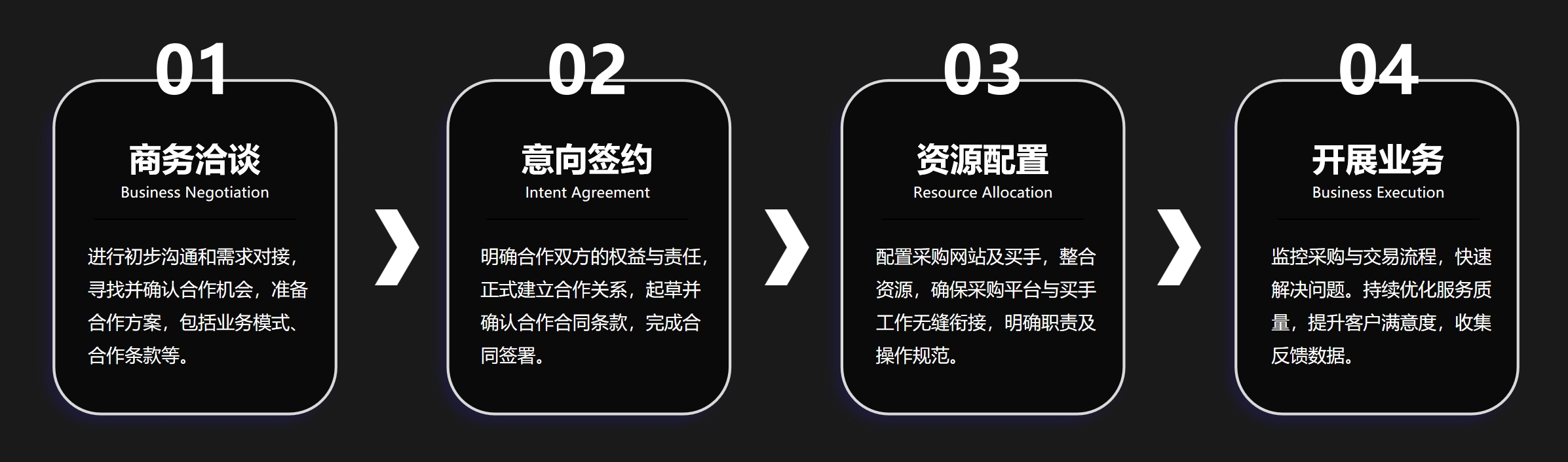 通过数字化管理实现高效协作,整个流程透明高效,保障商家权益,优化服务体验,满足多样化采购需求。